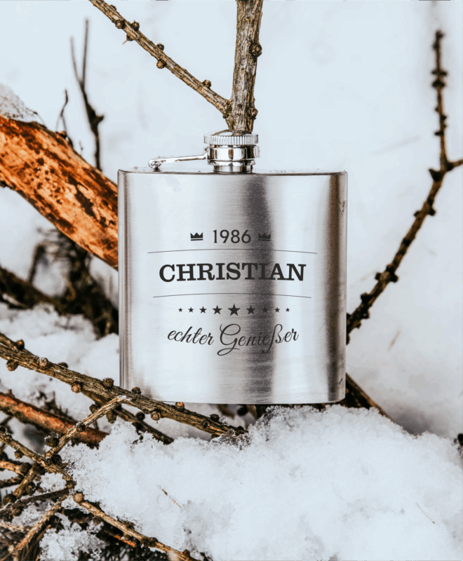 Monogramm Splitbuchstabe | gravierter Flachmann
