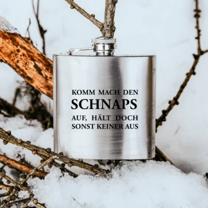Komm mach den Schnaps auf… | gravierter Flachmann