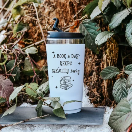 A book a day keeps reality away | Coffee to go Becher