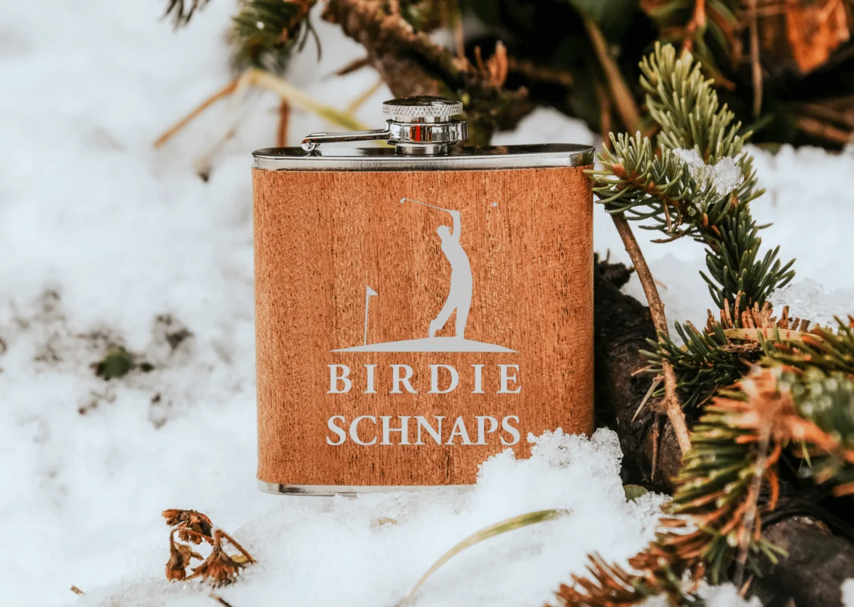 Der gravierte Birdie Schnaps-Edelstahlflachmann ist ein stilvolles und vielseitiges Accessoire für jeden Likör- oder Whiskyliebhaber. Diese Flasche ist aus hochwertigem Edelstahl gefertigt, was Langlebigkeit und Belastbarkeit garantiert.