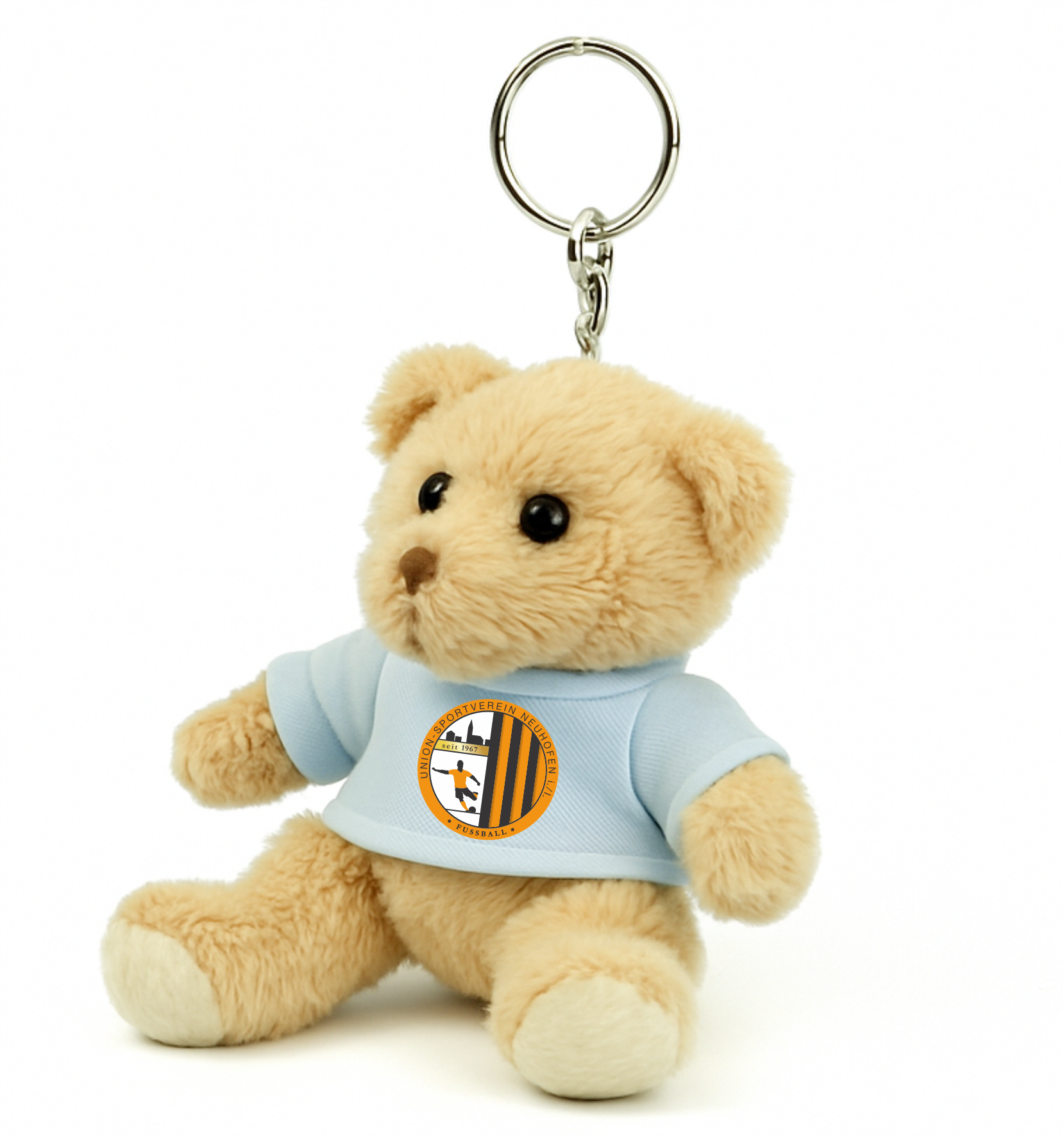Der flauschige Bär trägt ein hochwertiges Mini-T-Shirt, das mittels DTF-Druck mit dem offiziellen Logo des USV Neuhofen i.I. veredelt wurde. Egal ob an deinem Schlüsselbund, Rucksack oder Sporttasche – dieser kleine Fan ist immer dabei und zeigt allen: „Ich bin Teil des Teams!“